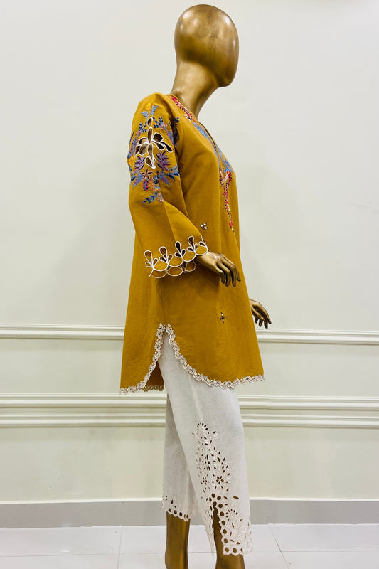 CARROT PEACH EMBROIDERY KURTA