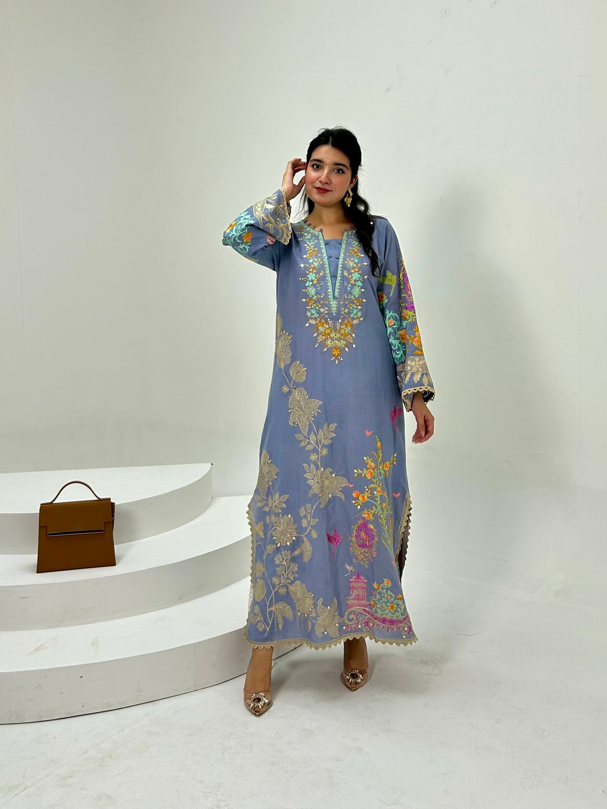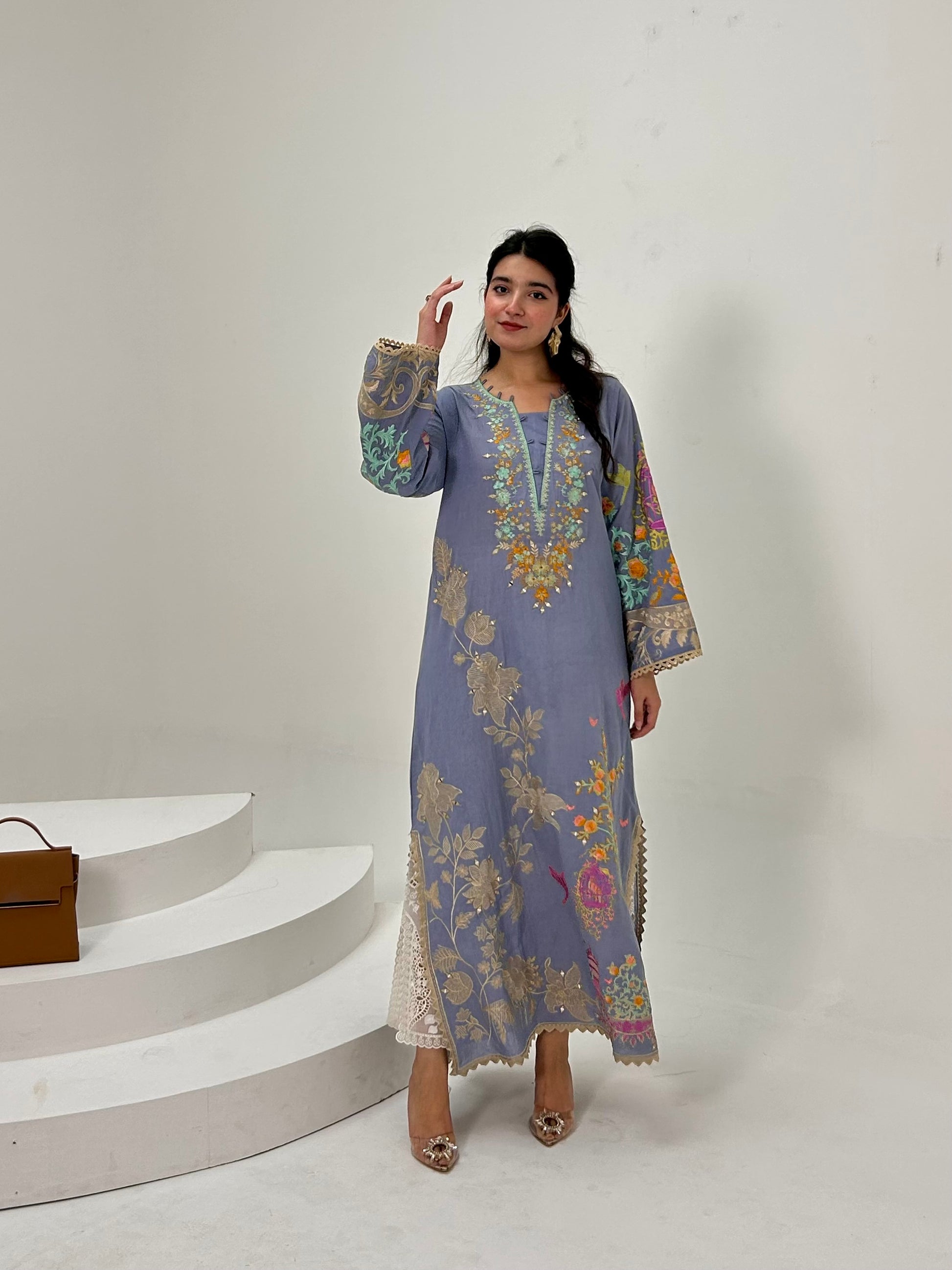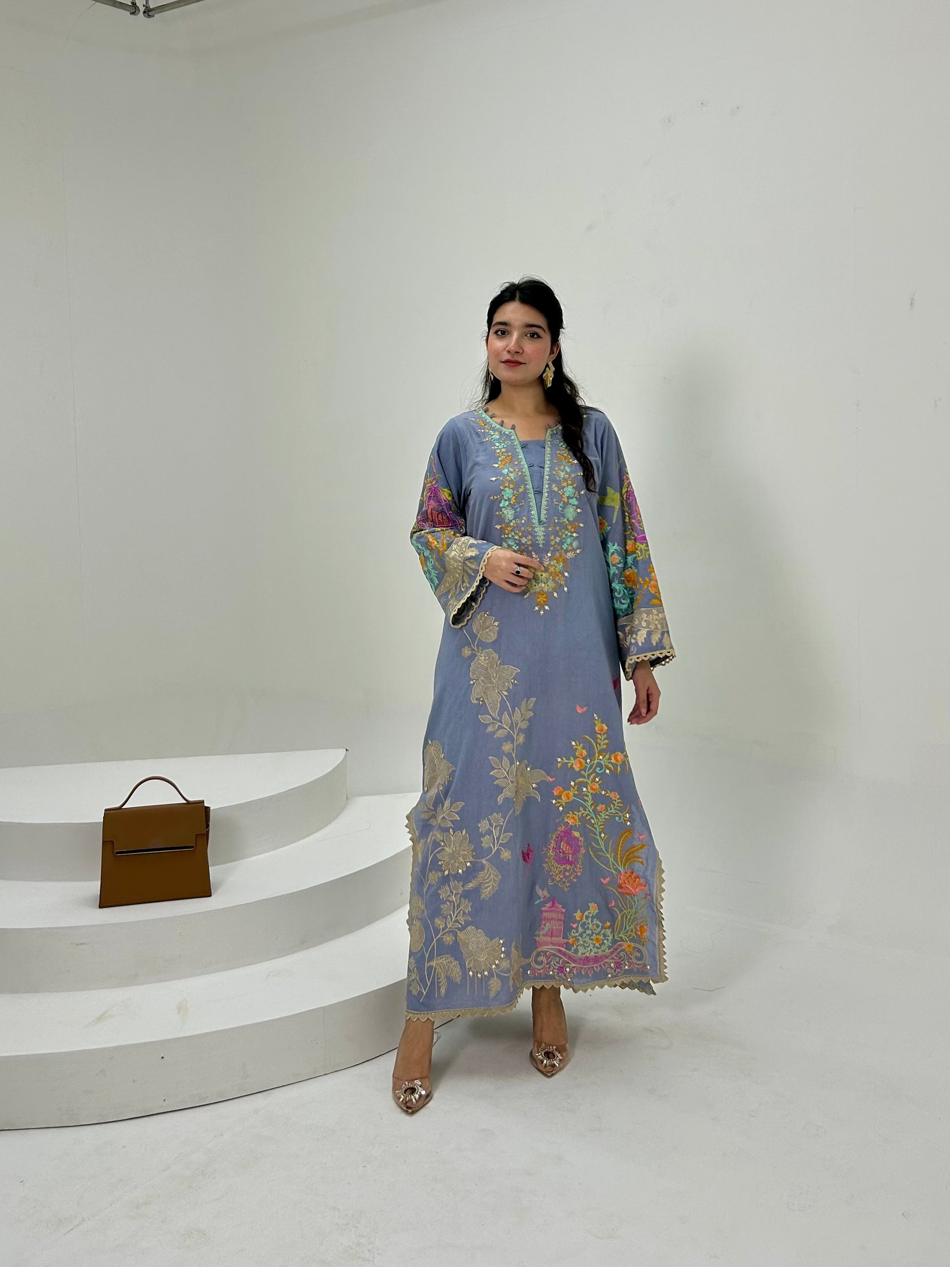 Description: ELEVATE YOUR WARDROBE WITH EFFORTLESS ELEGANCE WITH ( FLINT GRAY ) KAFTAN