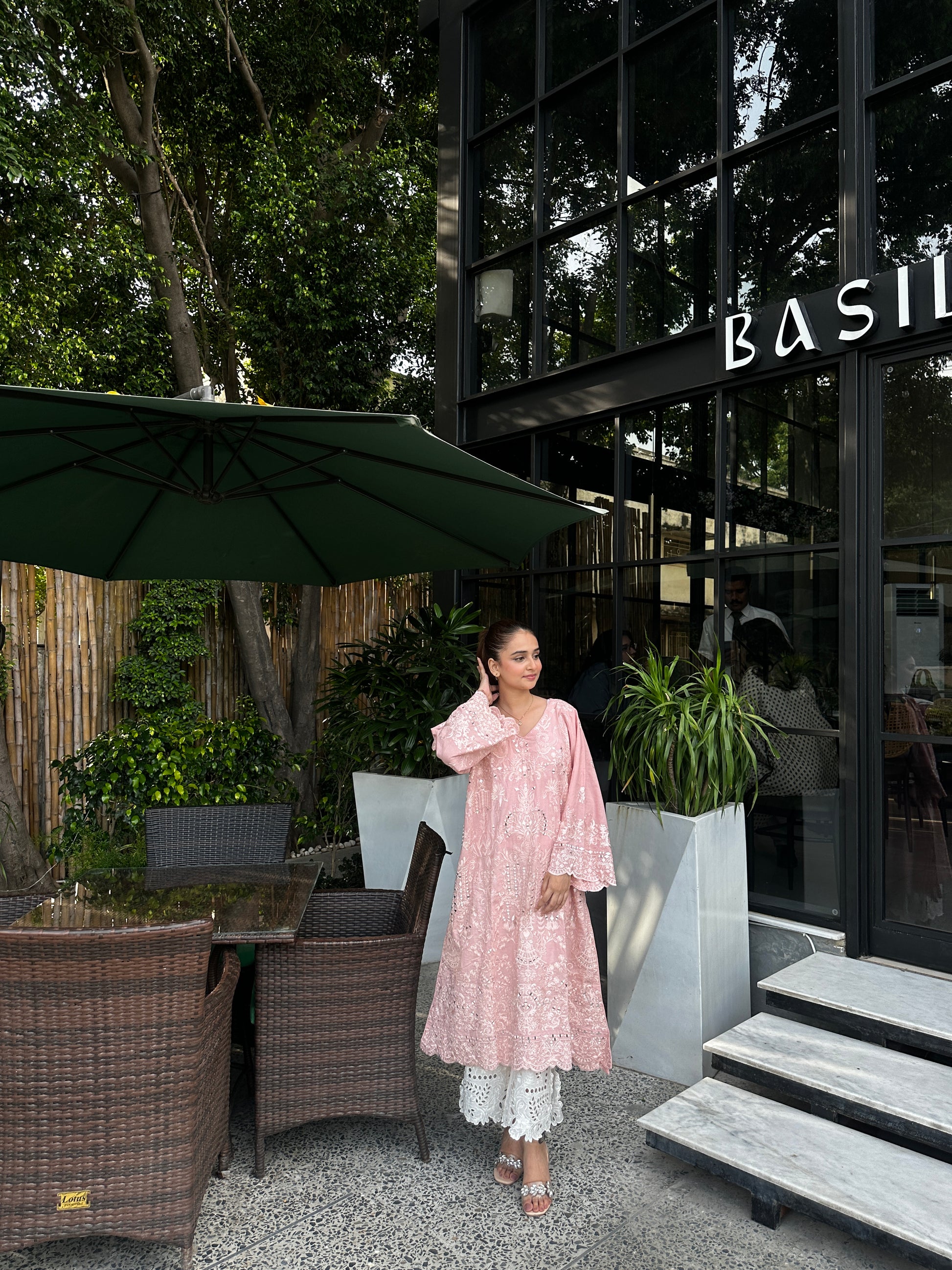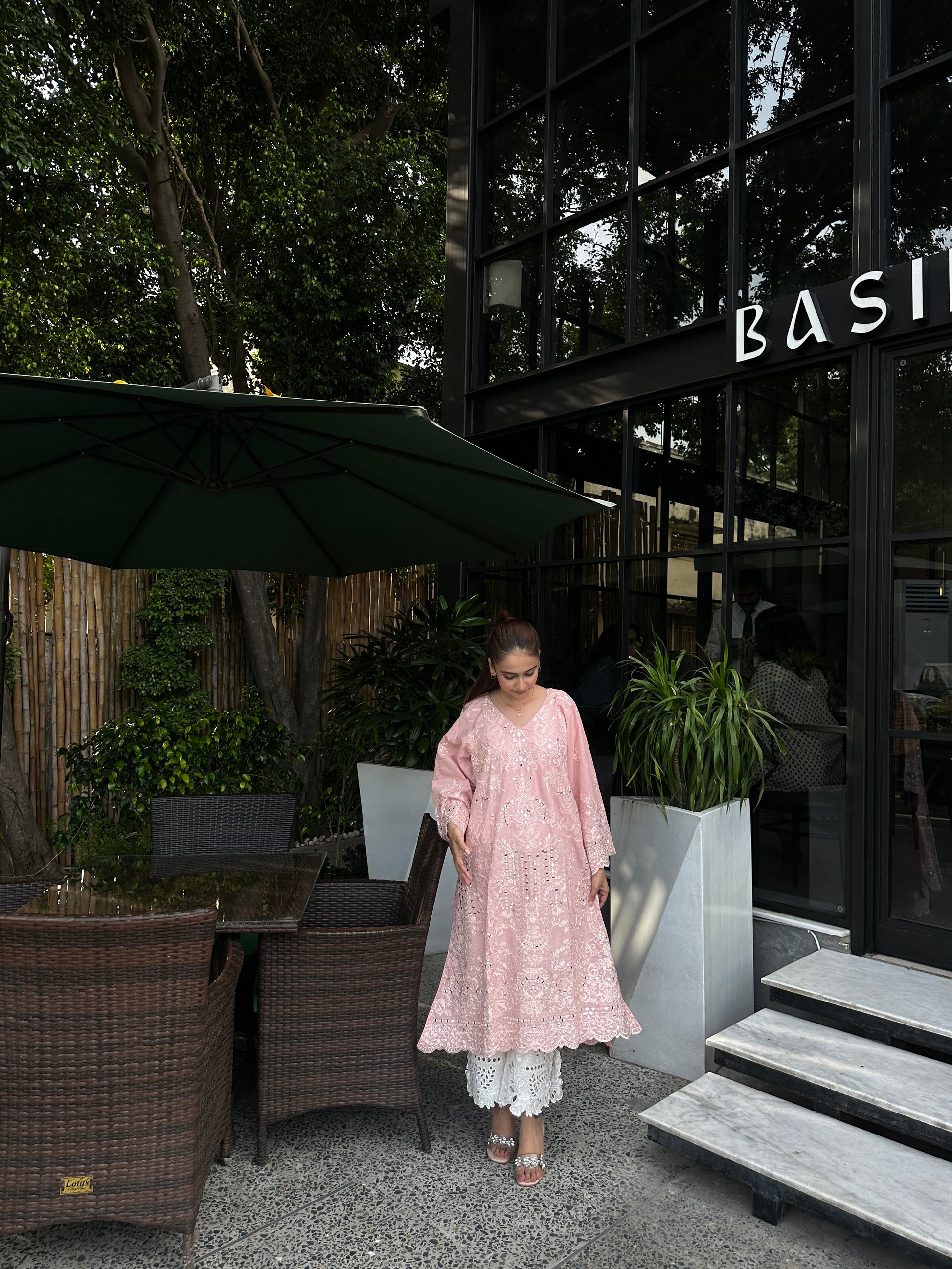 UNVEIL YOUR INNER DIVA WITH EVERY STITCH AND SILHOUETTE. WITH ( MELON PINK ) EMBROIDERED KURTA