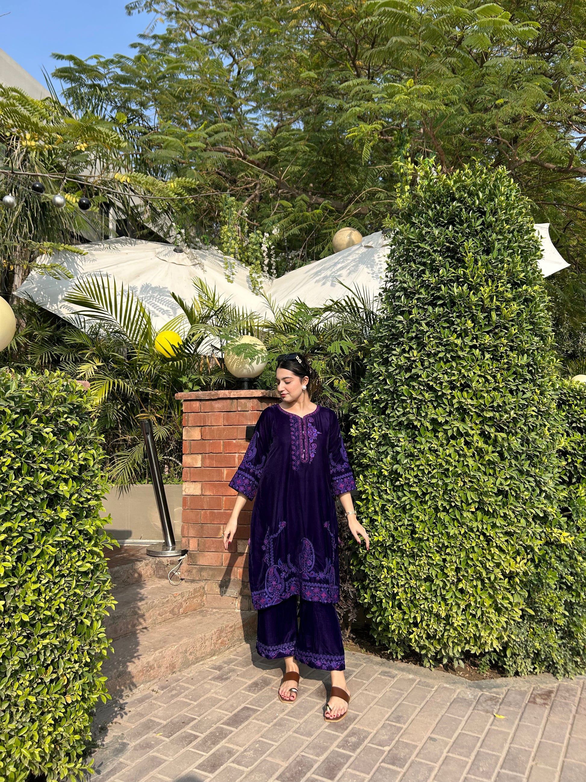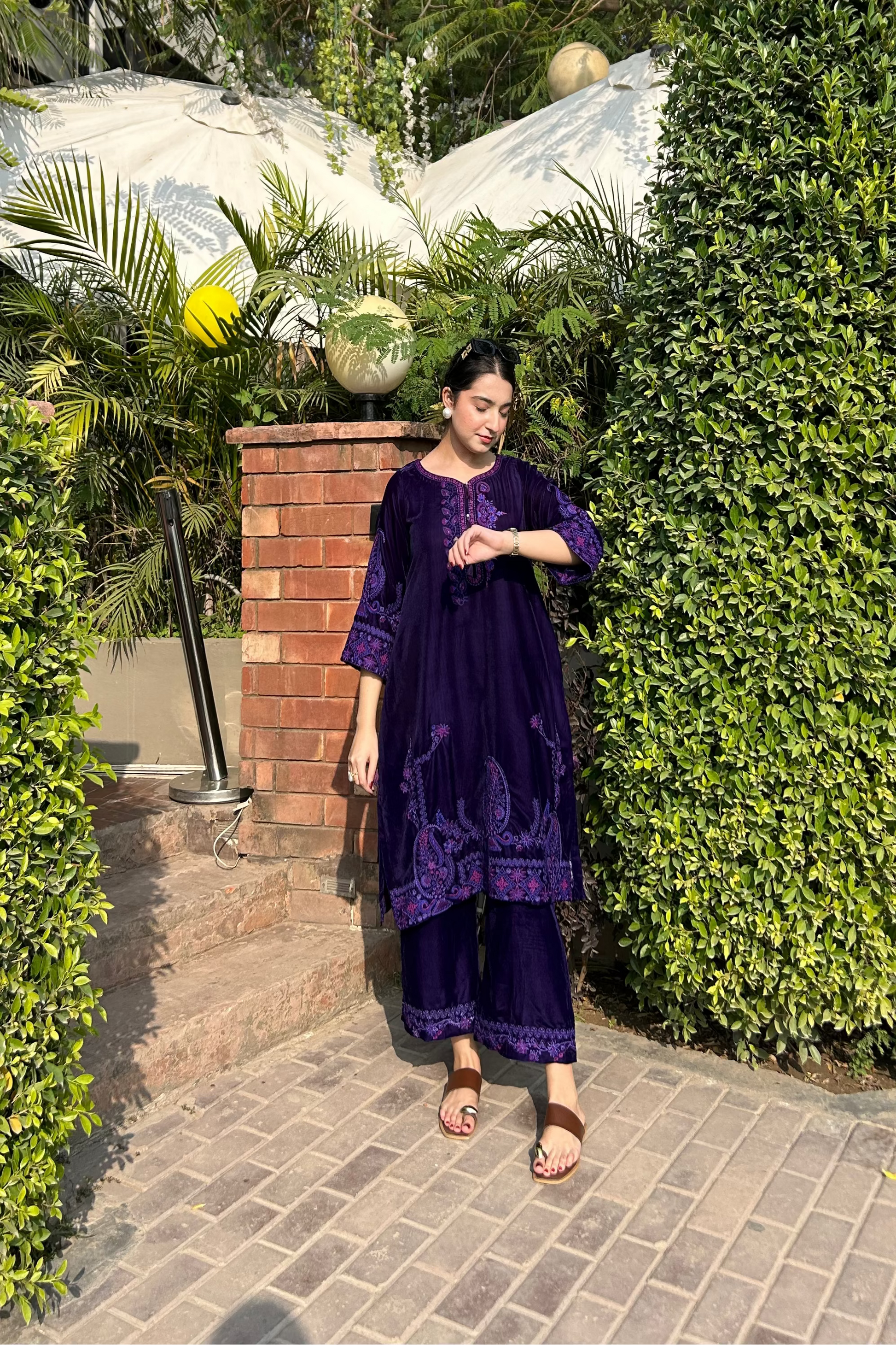 DARK PURPLE CO-ORD EMBROIDERED KURTA & PANT in VELVET With Thread Embroidery