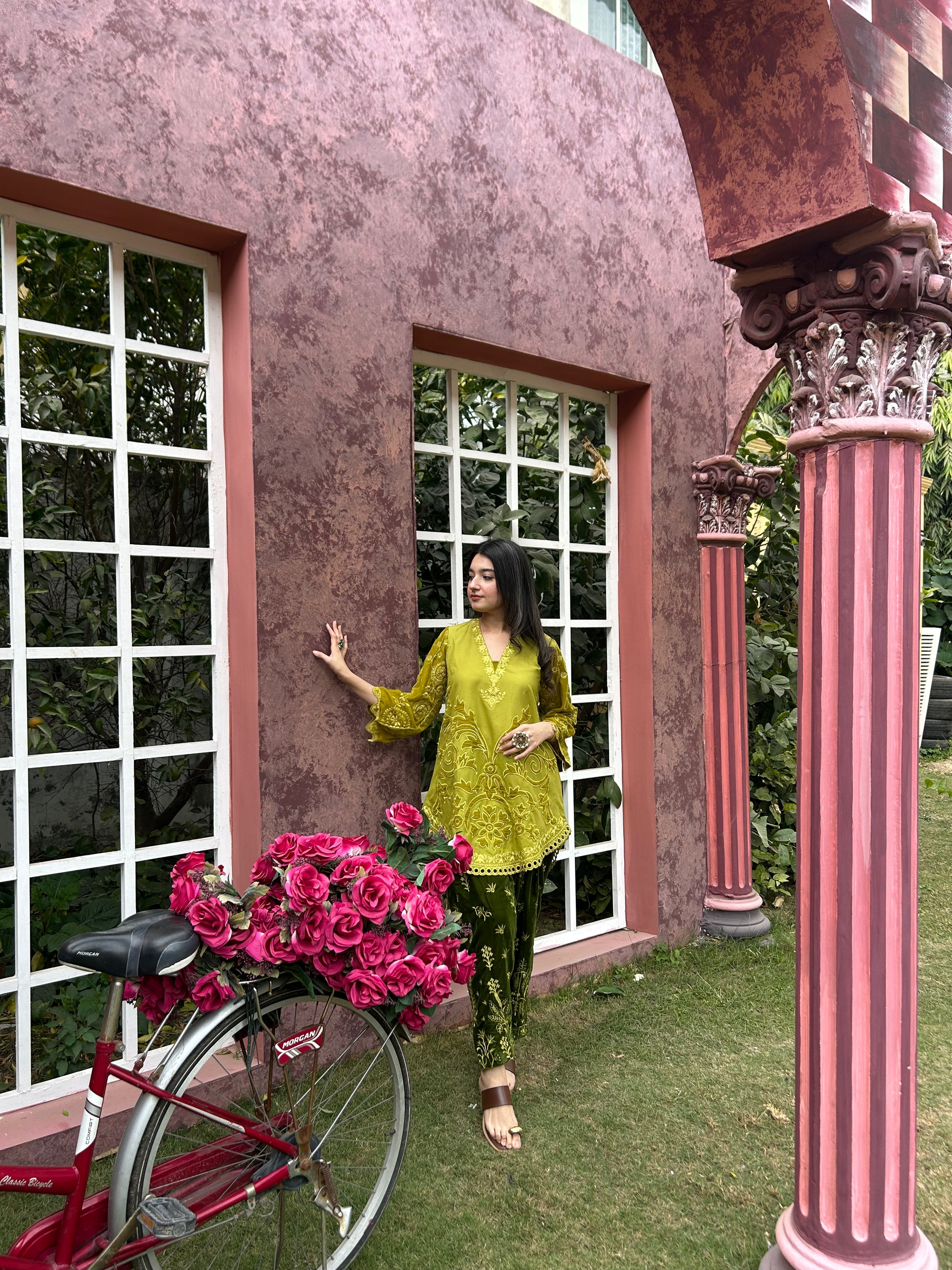 CORN YELLOW CO-ORD EMBROIDERED KURTA & PANT SHALWAR in VELVET With Thread Embroidery